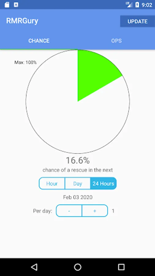 Uses information from the Rocky Mountain Rescue Group database to calculate the likely-hood of a rescue in the next hour or day. Other statistical information is also presented, allowing you to see various information about the number and probabilities of a rescue.
