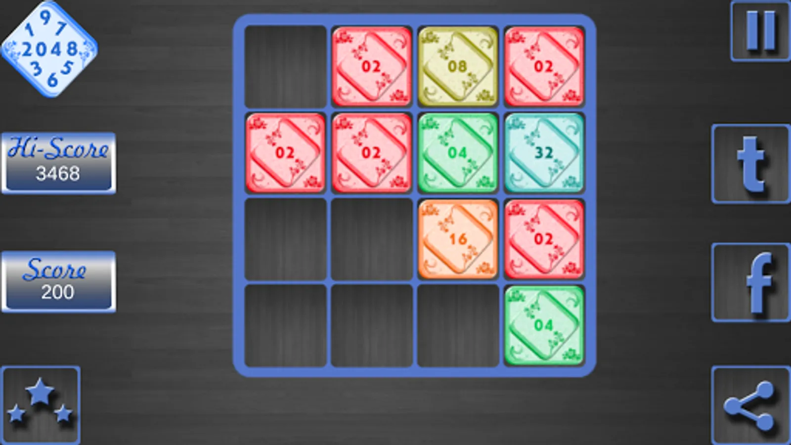 Different levels of same puzzle as 4*4, 5*5, 6*6 modes, provided to achieve targets easily.