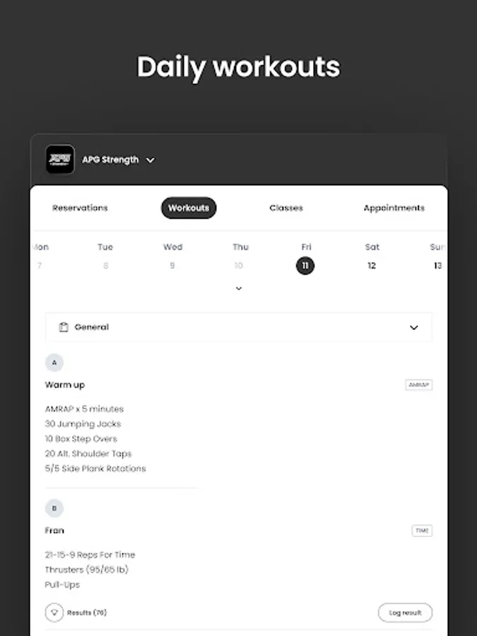For members of APG Strength to reserve their place in a class, sign up for gym events, and general account management like updating headshots and credit card on file.
