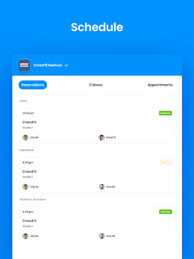 For members of CrossFit Nashua to reserve their place in a class, sign up for gym events, and general account management like updating headshots and credit card on file.