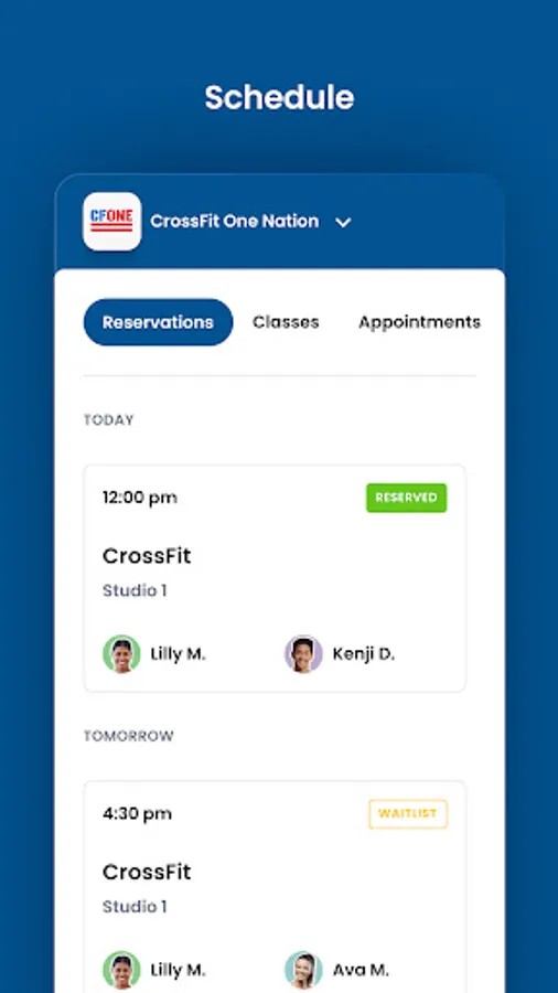 For members of CrossFit ONE Nation to reserve their place in a class, sign up for gym events, and general account management like updating headshots and credit card on file.