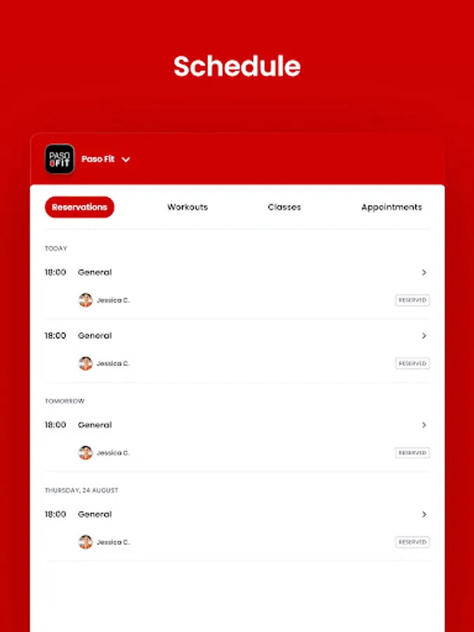 For members of Paso Fit to reserve their place in a class, sign up for gym events, and general account management like updating headshots and credit card on file.