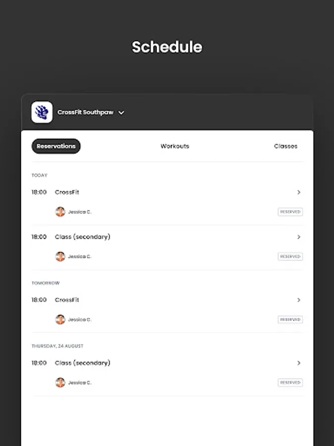 For members of CrossFit Southpaw to reserve their place in a class, sign up for gym events, and general account management like updating headshots and credit card on file.