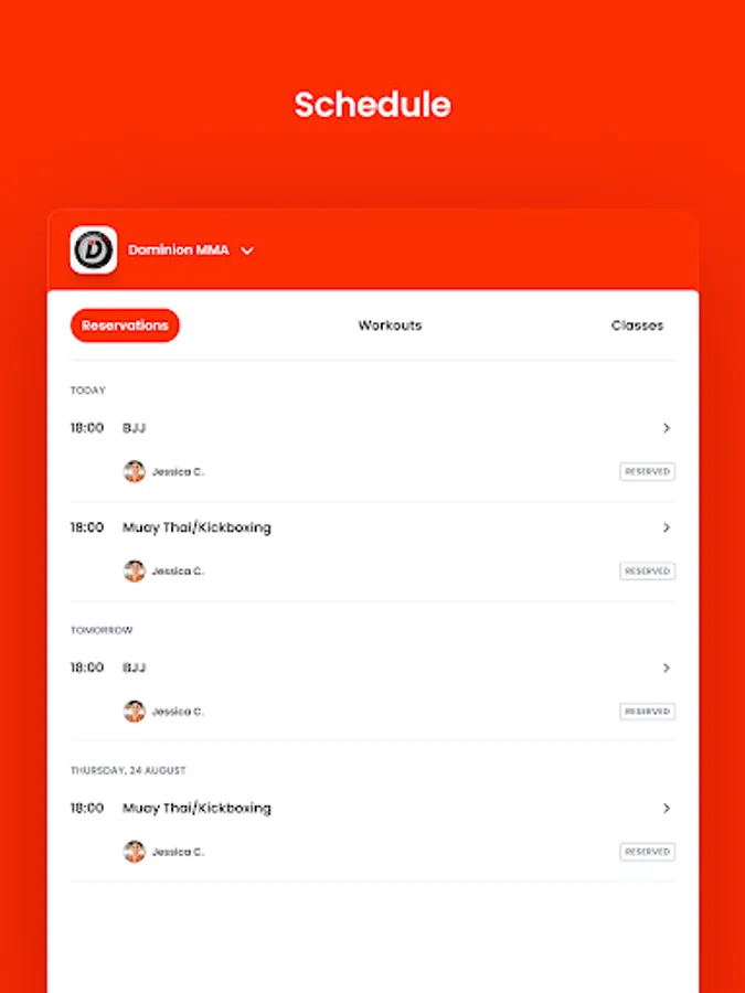 For members of Dominion MMA to reserve their place in a class, sign up for gym events, purchase product pre-orders and general account management like updating headshots and credit card on file.