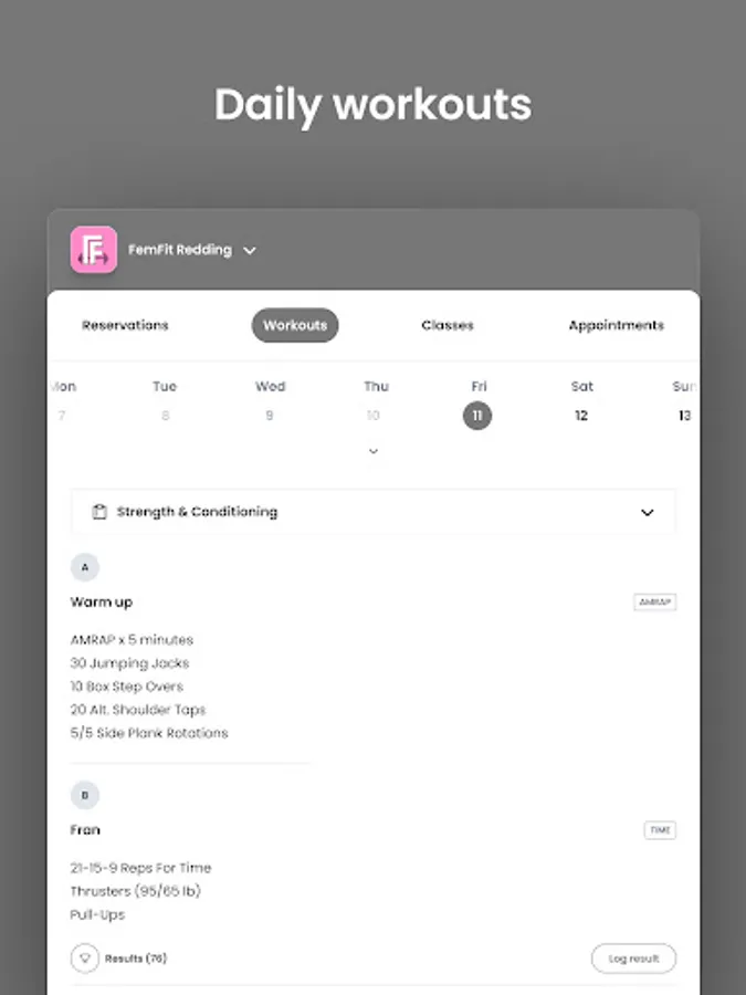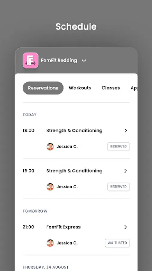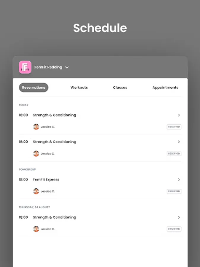 For members of FemFit Redding to reserve their place in a class, sign up for gym events, and general account management like updating headshots and credit card on file.
