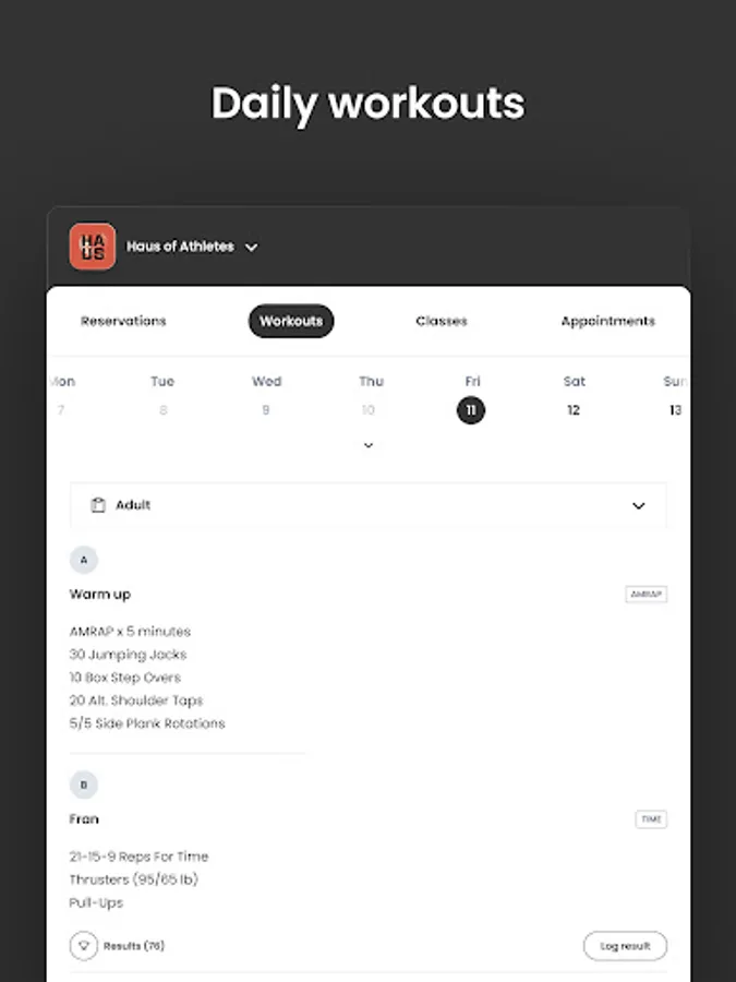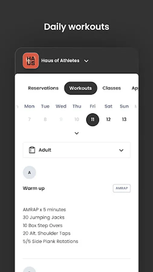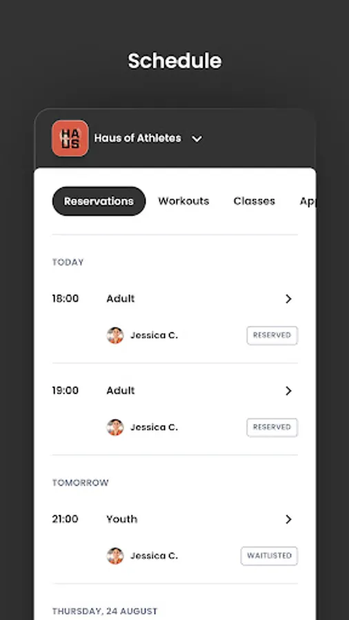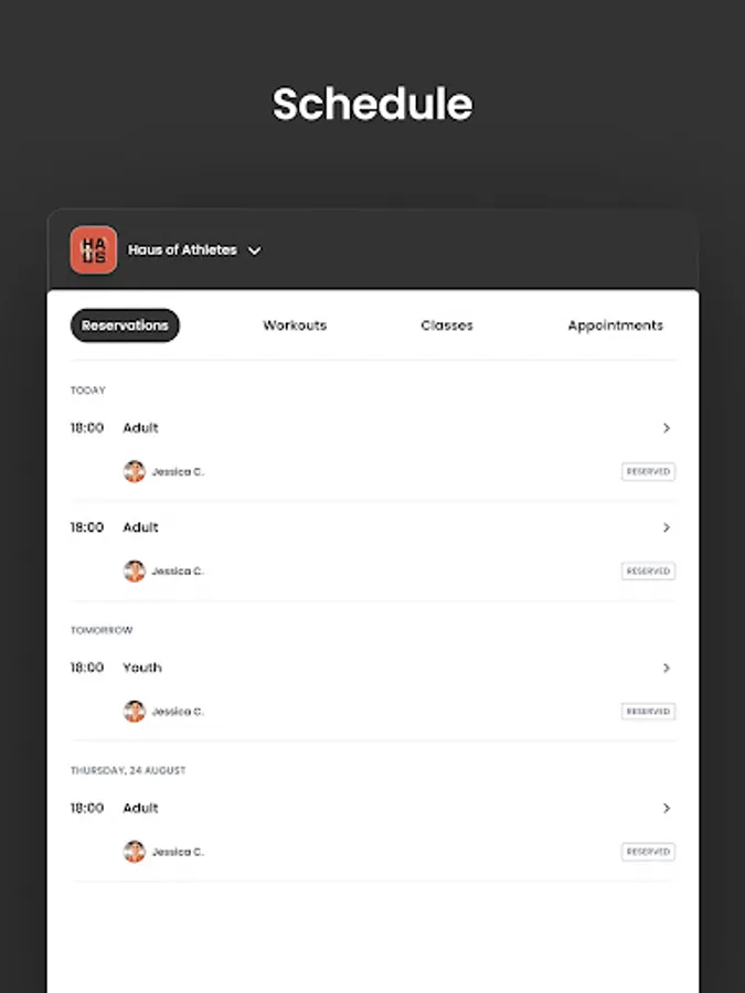For members of Haus of Athletes to reserve their place in a class, sign up for gym events, and general account management like updating headshots and credit card on file.
