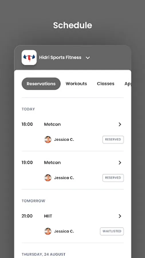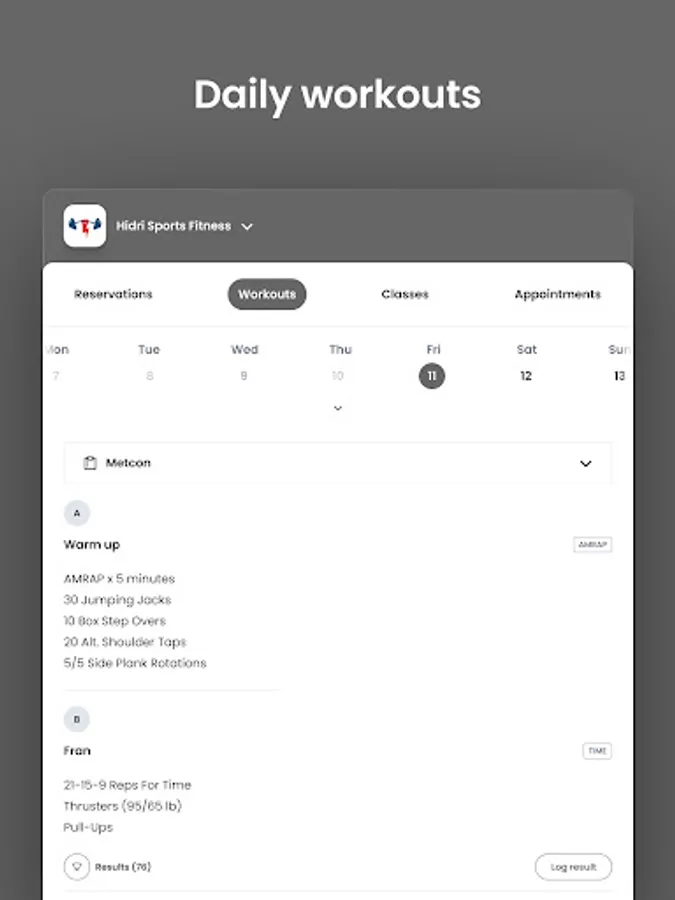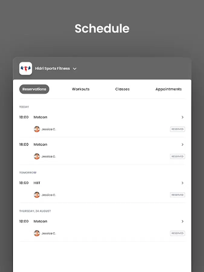 For members of Hidri Sports Fitness to reserve their place in a class, sign up for gym events, and general account management like updating headshots and credit card on file.