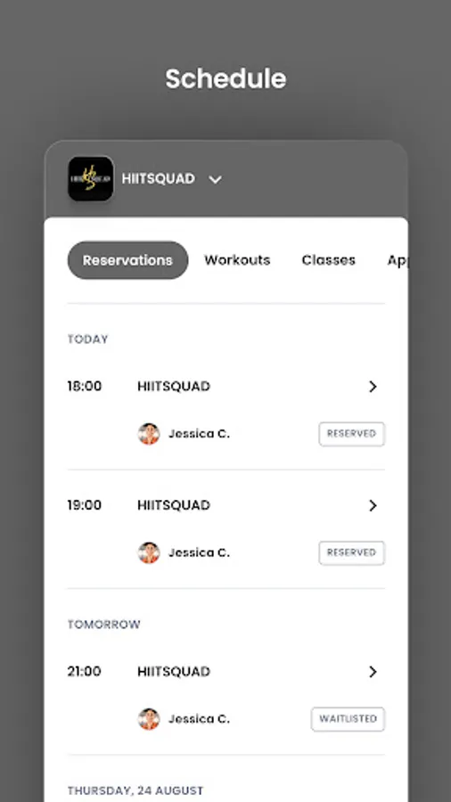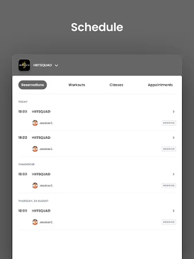 For members of HIITSQUAD to reserve their place in a class, sign up for gym events, and general account management like updating headshots and credit card on file.