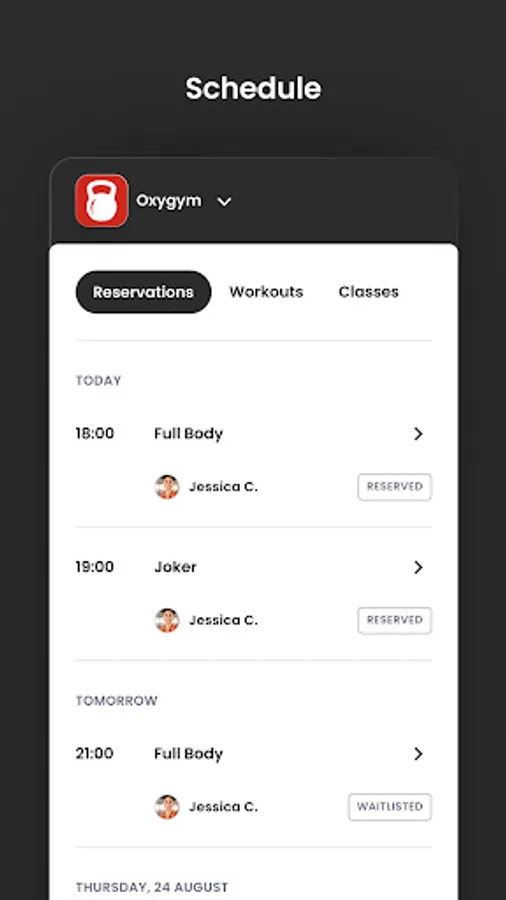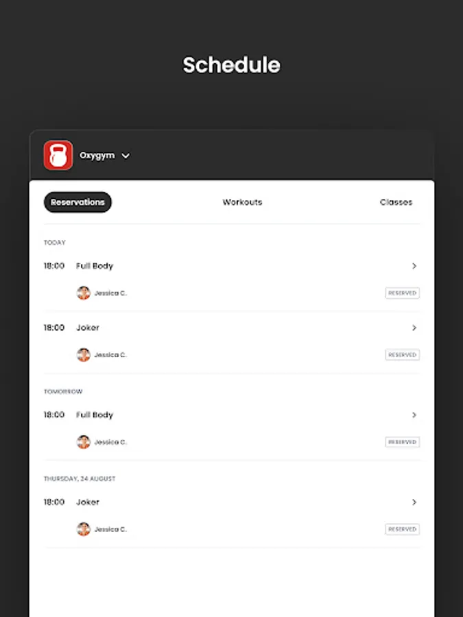 For members of Oxygym to reserve their place in a class, sign up for gym events, and general account management like updating headshots and credit card on file.