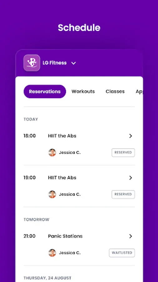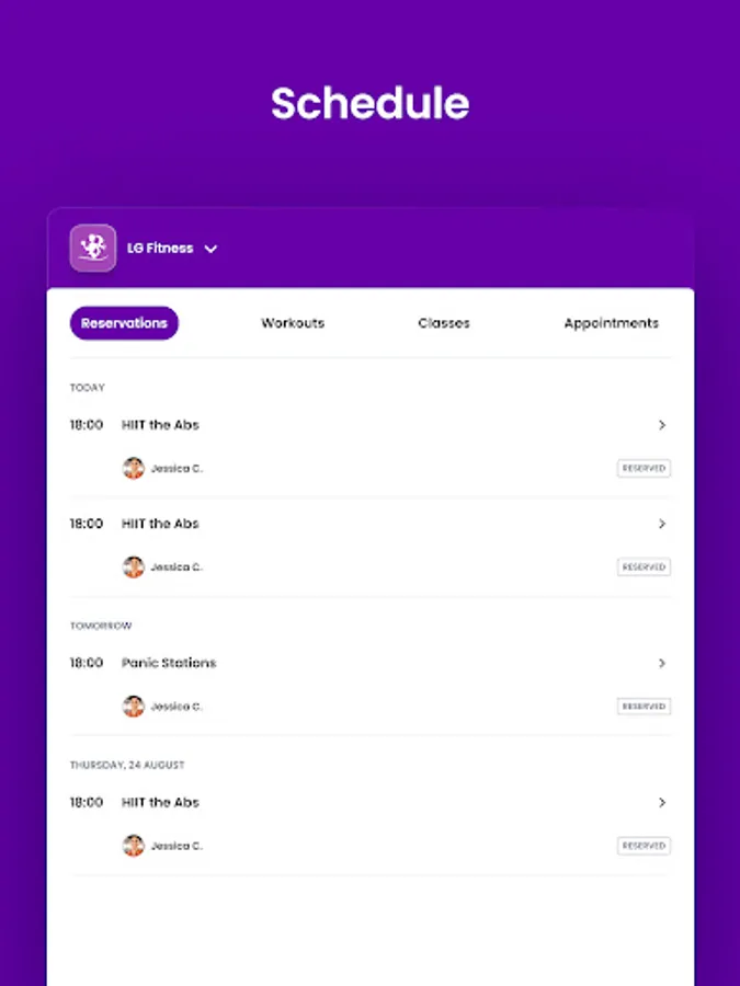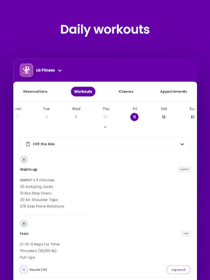 For members of LG Fitness to reserve their place in a class, sign up for gym events, and general account management like updating headshots and credit card on file.