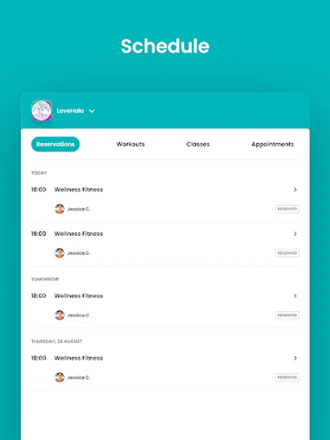 For members of LoveHala to reserve their place in a class, sign up for gym events, and general account management like updating headshots and credit card on file.