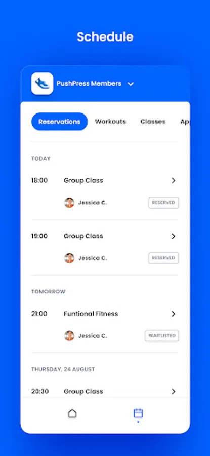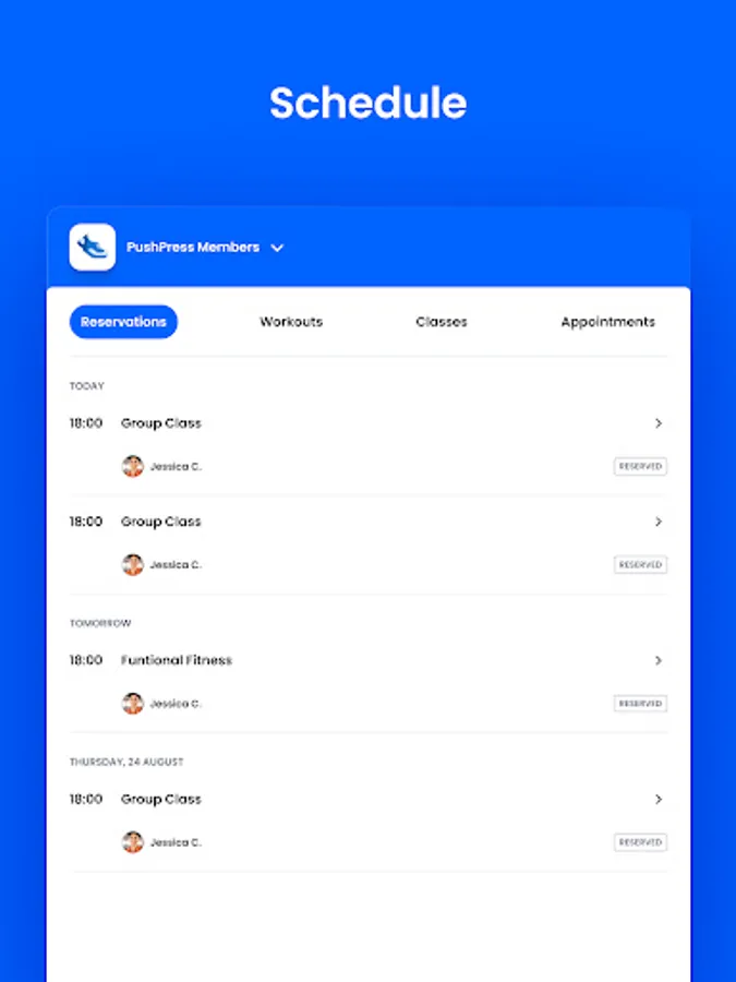 For gym members to reserve their place in a class, sign up for gym events, purchase product pre-orders and general account management like updating headshots and credit card on file.