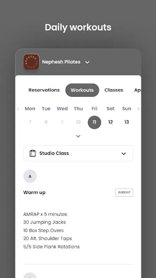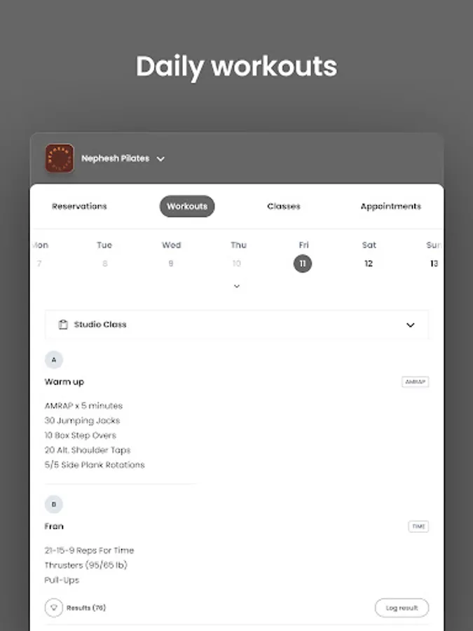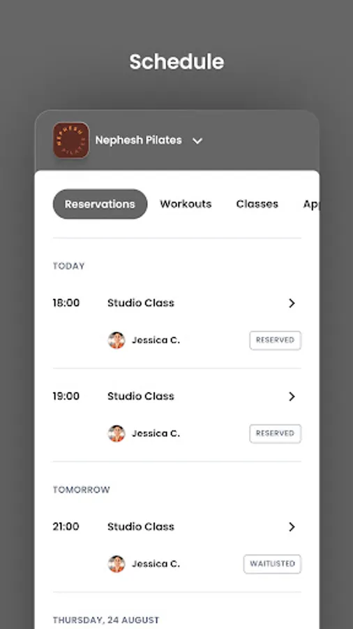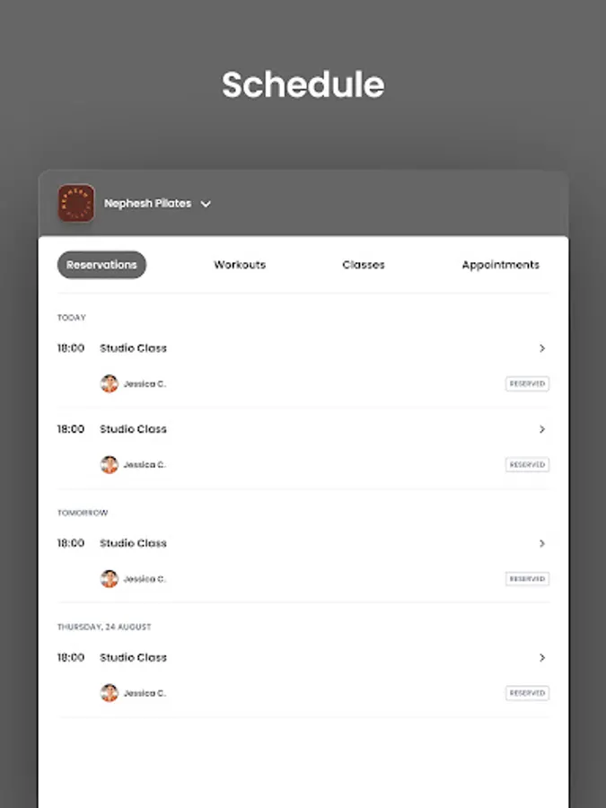 For members of Nephesh Pilates to reserve their place in a class, sign up for gym events, and general account management like updating headshots and credit card on file.