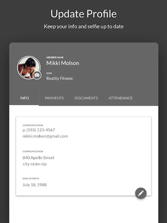 For members of Reality Fitness to reserve their place in a class, sign up for gym events, and general account management like updating headshots and credit card on file.