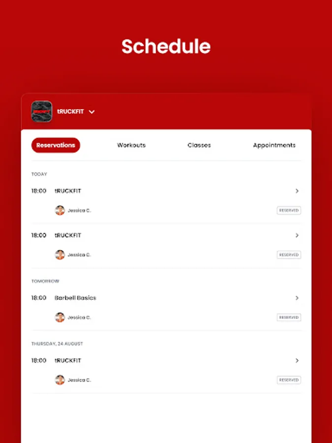 For members of tRUCKFIT to reserve their place in a class, sign up for gym events, and general account management like updating headshots and credit card on file.