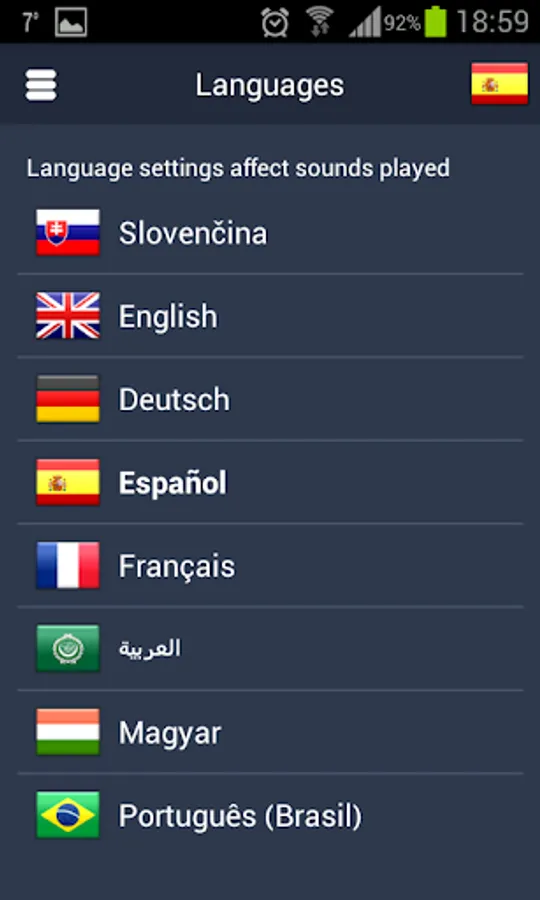 • English, Spanish, Portuguese, French, German, Russian, Arabic, Japanese, Korean, Hungarian, and Slovak