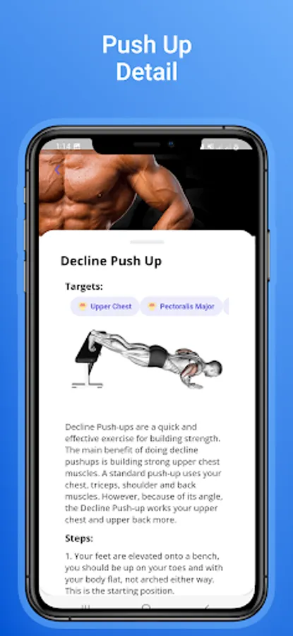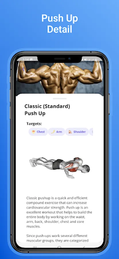 Download Now and train yourself at your home without any equipment for free while being offline, using this personal push-up trainer and also using equipment in a gym. Each push-up exercise comes with detailed video explanations & video push-up workouts.