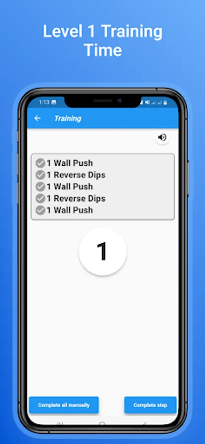 The App contains an automatic push-up counter using a proximity sensor and also it counts on a touch of the screen. You can also enter the training and practice data manually.