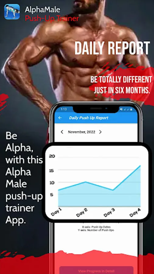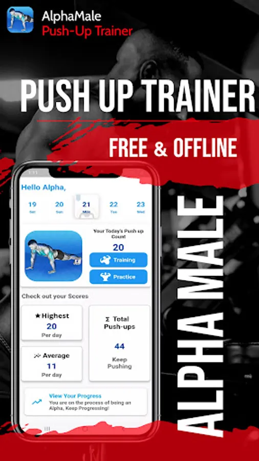 With Alpha Male, you'll have your own personal push-up trainer for free, with more than 50 kinds of push-up workouts. And with the consistent six-month push-up trainer app that will guide you every day, you'll be able to become an Alpha in just six months, going from 0 to 200 push-ups. Alpha Male is a fitness tracker, workout tracker and pushup fitness goal app that will help you achieve your pushup goals and rep counting.