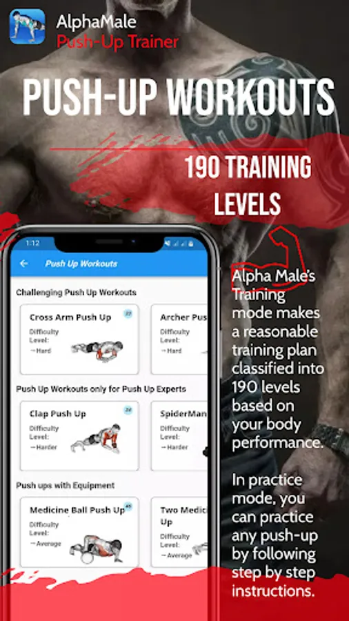 Introducing AlphaMale(Pushup Master Home Trainer), the ultimate personal pushup tracker, pushup challenge and pushup training app that will revolutionize the way you workout at home. With over 50 unique and varied push-up styles, from beginner level to advanced. This AlphaMale app is perfect for push-up beginners and experts alike. The App contains detailed video instructions and step-by-step guides, you'll never be lost in your pushup workout at home again. Alpha Male is the perfect pushup progress tracker, pushup log and pushup monitor that will help you achieve your fitness goals.