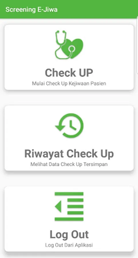 E Jiwa is an android based application for early detection of mental disorders in the community by health workers using SRQ 29 tools that are easy, fast and comprehensive and integrated handling