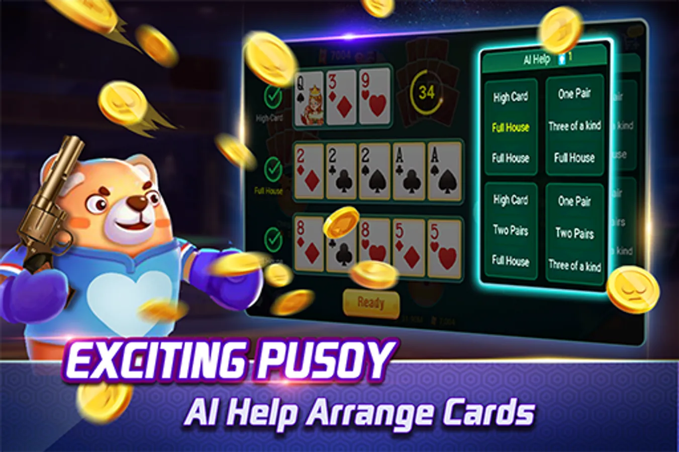 Play Pusoy with millions of players on mobile anytime! Arrange the 13 cards strategically to win massive golds.
