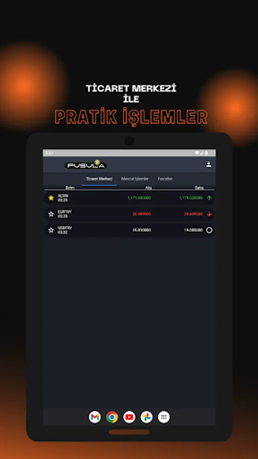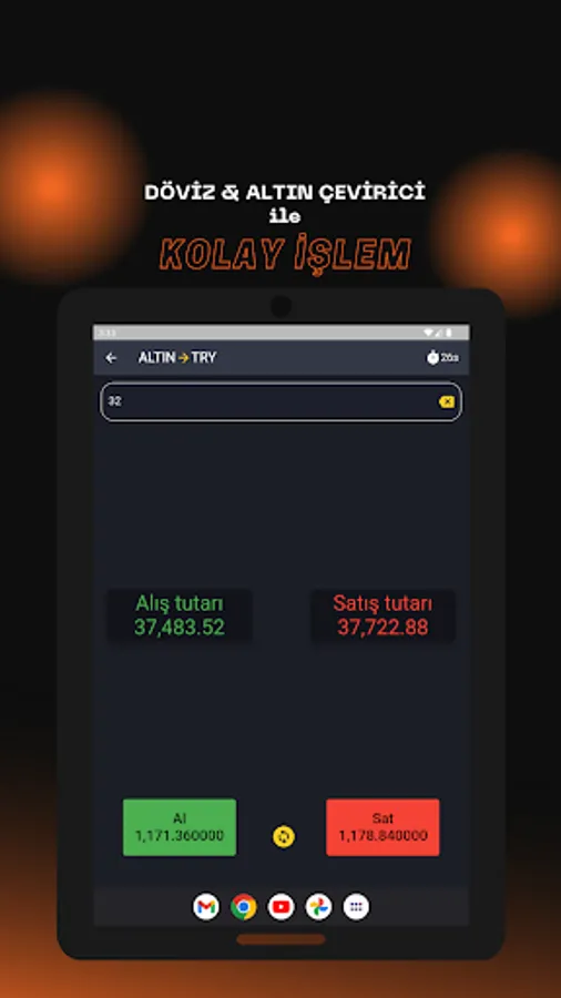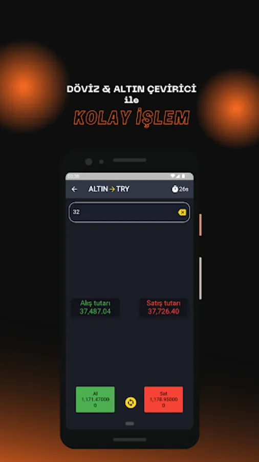 You can buy or sell dollars, euros and/or gold in this application where you can perform your currency-based transactions.