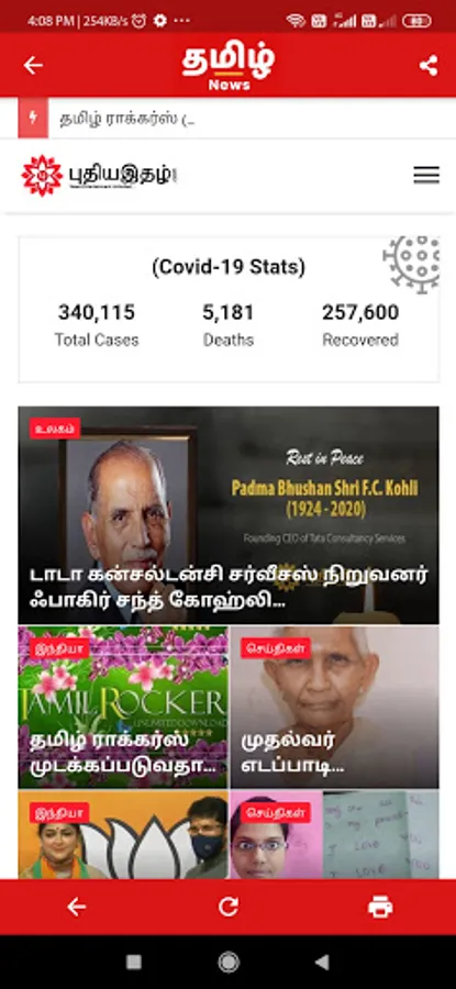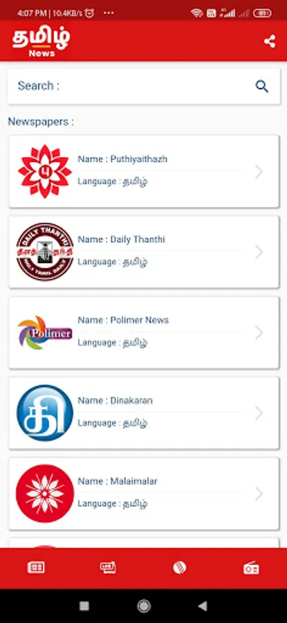 The Hindu (Tamil), Daily Thanthi, Dinamalar, Maalai Malar, Dinakaran, Tamil Murasu, Dinamani, Theekkathir, Dinasudar, Thinakkural, Malai Murasu, One India Tamil, Thinaboomi, Murasoli, Virakesari, Uthayan, Nakkeeran, Webdunia, Cineulagam, Goodreturns Tamil and more
