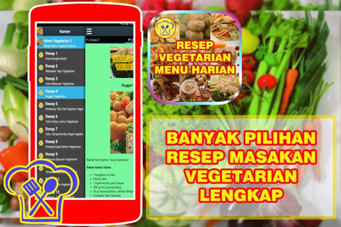 If you are a vegetarian no longer difficult to find a suitable recipe for processed foods you eat, because now we present an application that provides various information DAILY vegetarian recipes are very easy to make the family's kitchen. Many olahann variety of vegetables, fruits and a variety of other delicious CUISINE, in which you all will be given step by step how to prepare your meal ready to eat with the family. All FOOD guaranteed healthy and leza definitely all the ingredients are very easily accessible in your home kitchen, congratulations to live healthy with all sorts of menu VEGETARIAN RECIPES and hopefully this can help you all,. ,,, regards,., Chef,. ,,, thank you.,,,.