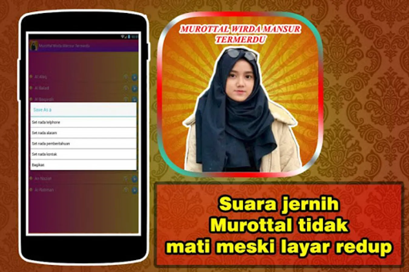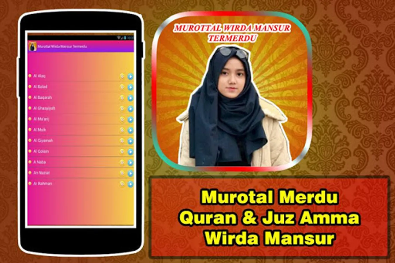 Sebabagai people of diverse ISLAM hear good things is a duty because it will add to our faith to the gods, one of them is listening to chant JUZ AMMA & Qur'an, this time we will give the app will load on various chanting murottal of a beautiful girl named wirda mansur_, he is one of the daughters of _ustadz_yusuf Mansur very good at memorizing QURAN and may wirda is one HAFIZ Indonesia. There are various letters LETTER SHORT which sang with very merdua once, with various attractive features such as voice murottal juz amma very clear and the sound will not die Mekipun screen is dim and we'll be sharing murottal WIRDA MANSUR termerdu to relatives and friends our friend so that we can share the goodness as the fasting month of RAMADAN this. May be useful for us all,. ,,, always read chapters murottal ama and the Quran so that we always get the reward ,, ..., thank you,. ,,, and may we always be better people every day,. ,, Aamiin. ,,,,