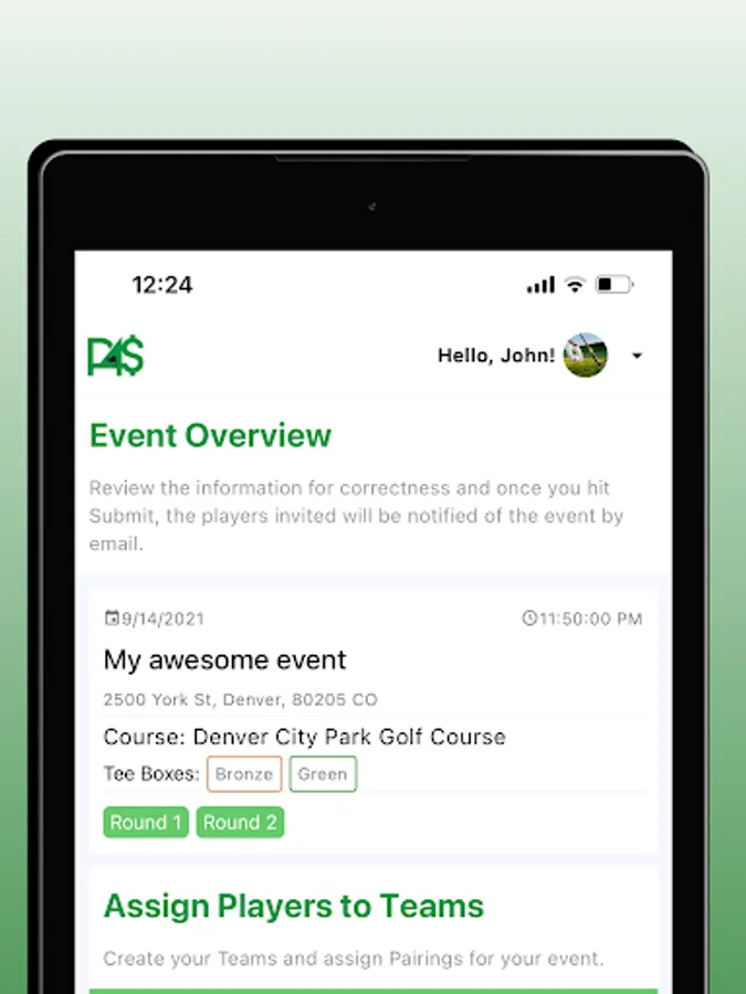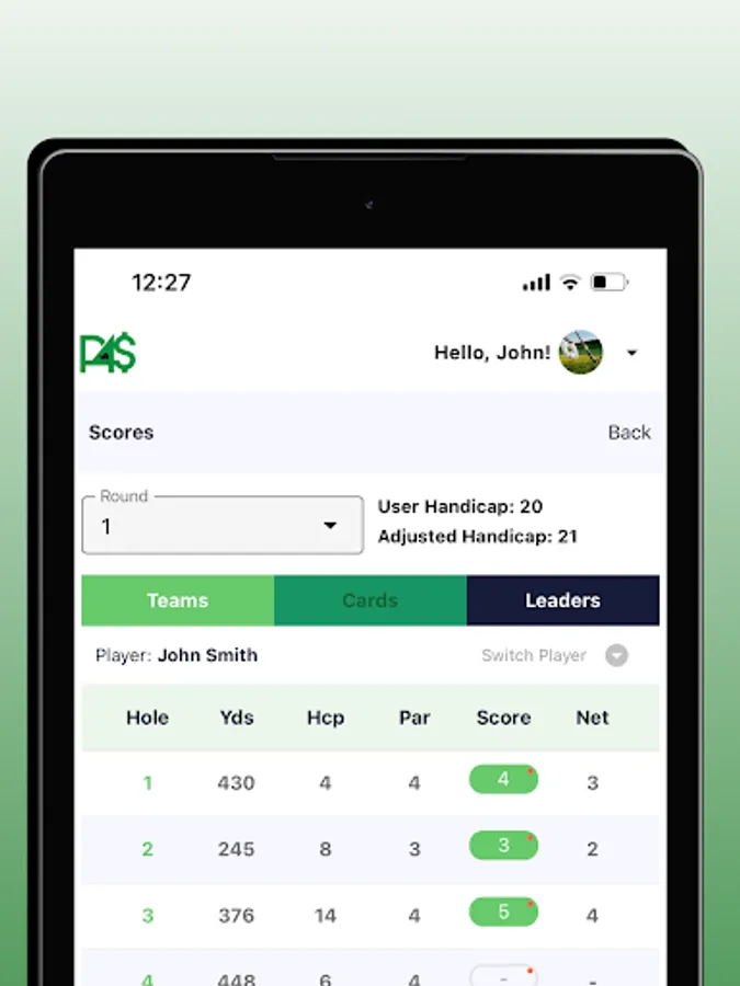 Putt4$ will provide the ultimate golf application for golf lovers and recreational hackers of all levels and ages! The current version of Putt4$ provides a mobile application to capture real-time player and team scorecards, as well as real-time leaderboard for in-round scoring. The application enables players and teams to enter hole-by-hole scores and provides instant leaderboard updates. Invite as many players as you want to join and you can even track multiple rounds over multiple days simply by adding their cell phone or email address. Initial tournament and team configuration can be live in minutes. Setup your round or tournament and track your performance against your fellow players or multiple friends in different foursomes.