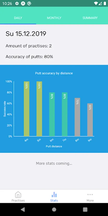 Keep track of your putting practices. See the stats, is your putting trends going up or down?