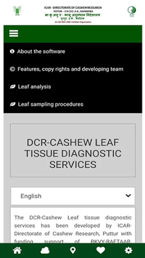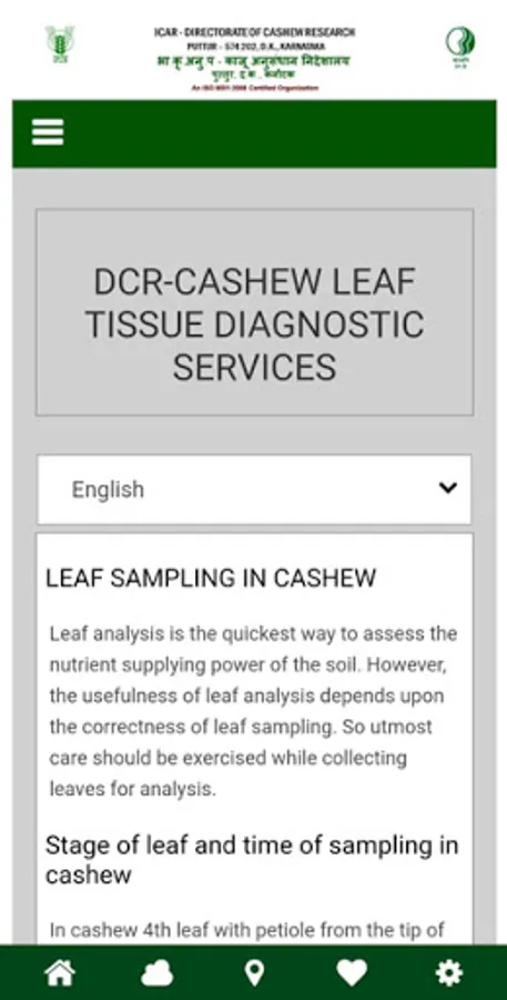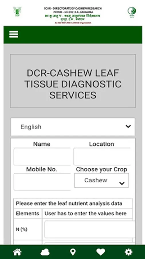 This App help to find out the nutrient supply to the cashew tree by leaf tissue analysis. The user has to first get analysed their leaf samples from a laboratory after following the proper leaf sampling and processing procedures and use the data for obtaining the results.