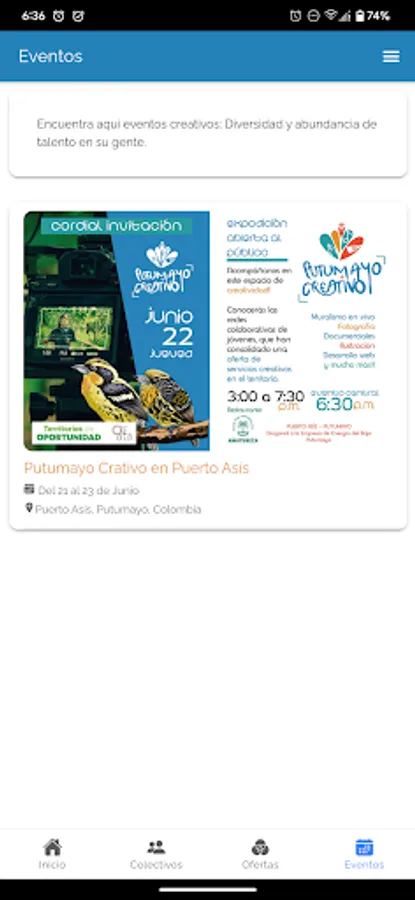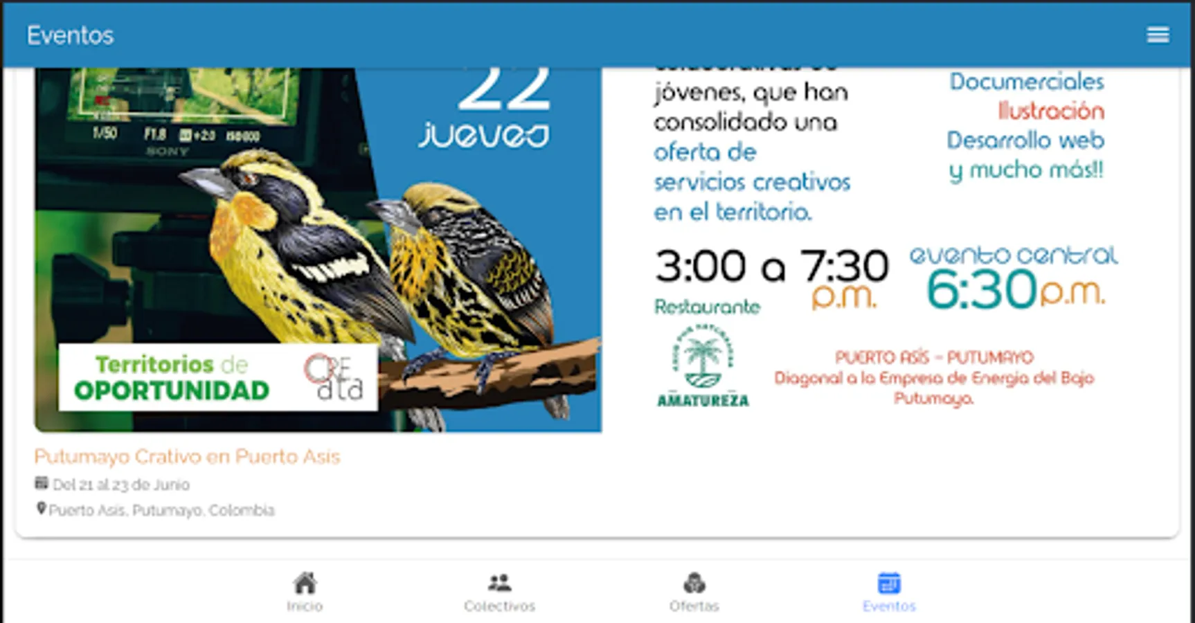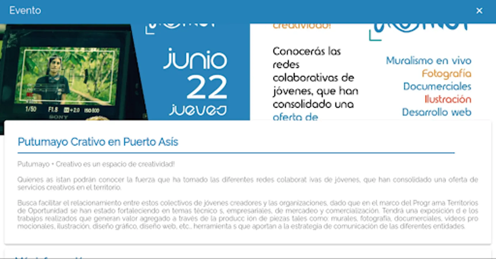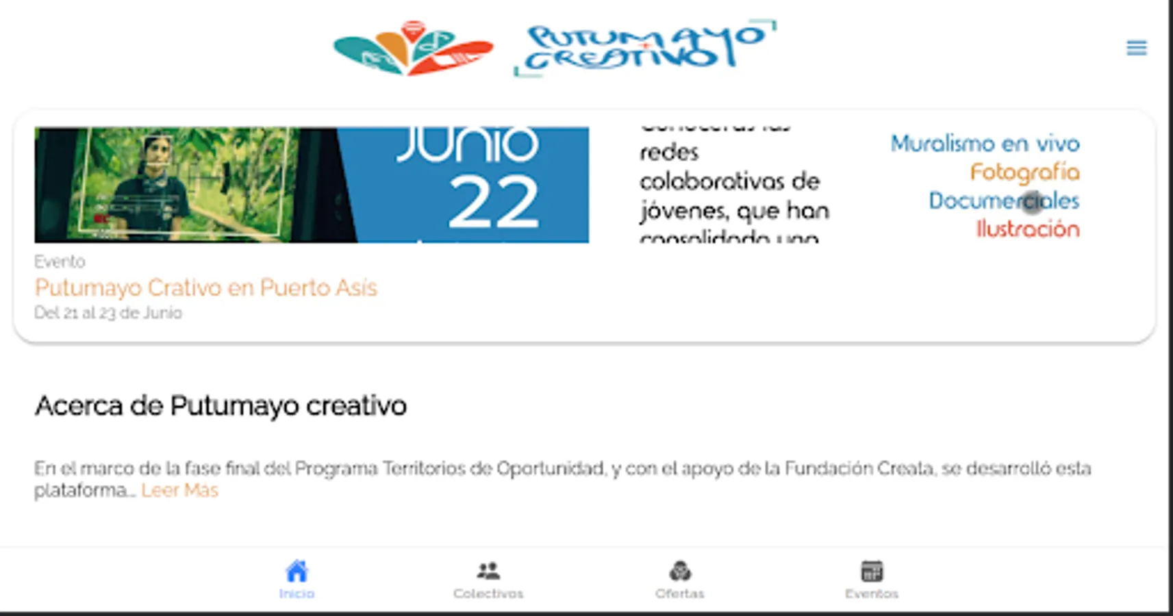 Likewise, Putumayo Creativo provides all the artistic talent of the department with a platform that allows them to make themselves known, as well as to disseminate festivals, fairs and different events related to artistic work in its various forms.