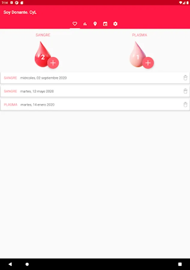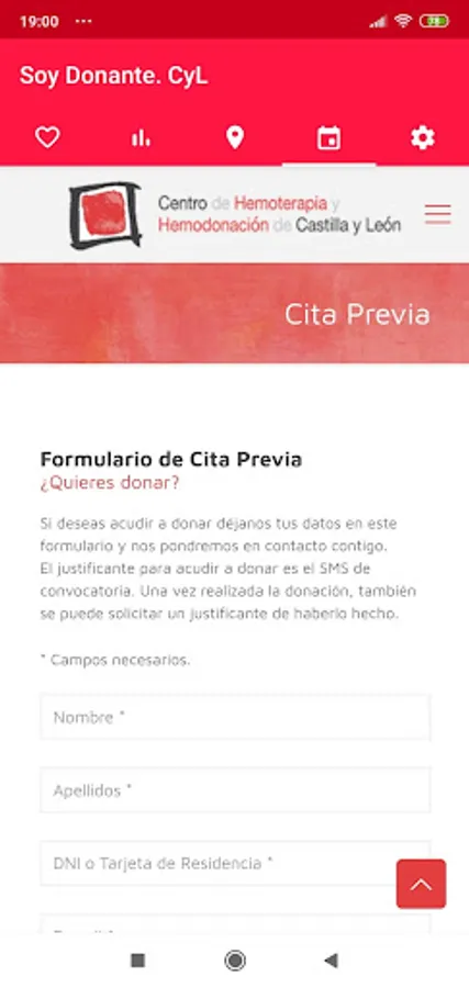In this application you can keep a record of blood and plasma donations that you are making. You can also ask him to notify you when a certain time has passed since the last donation. You will be able to consult the statistics of donations in Castilla y León in the last months, consult the donation points, both fixed and collect, and access the page to request an appointment for your donation.