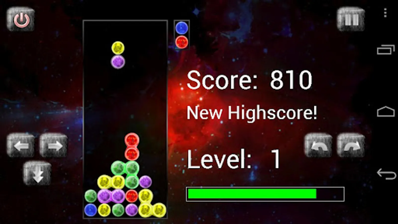 - Create chain reactions for more points or to defeat the KI player