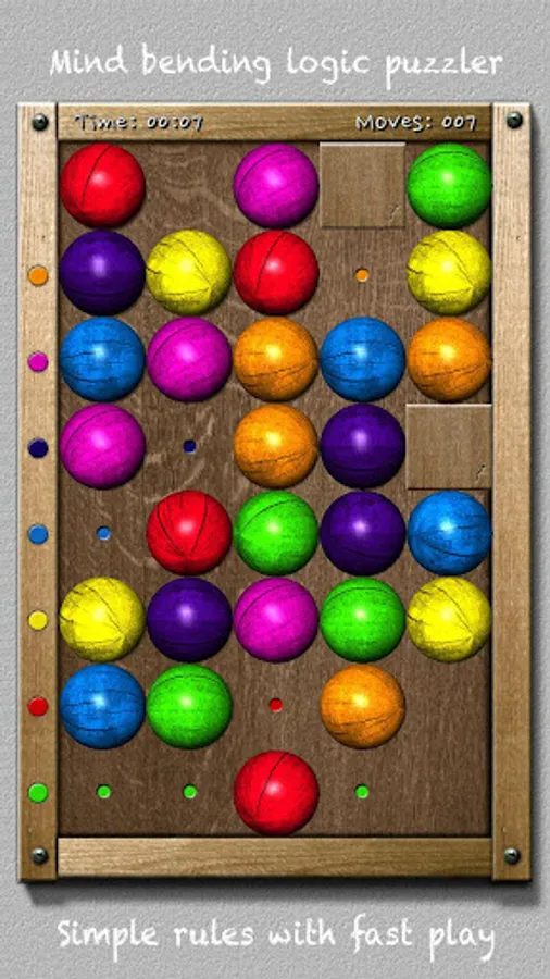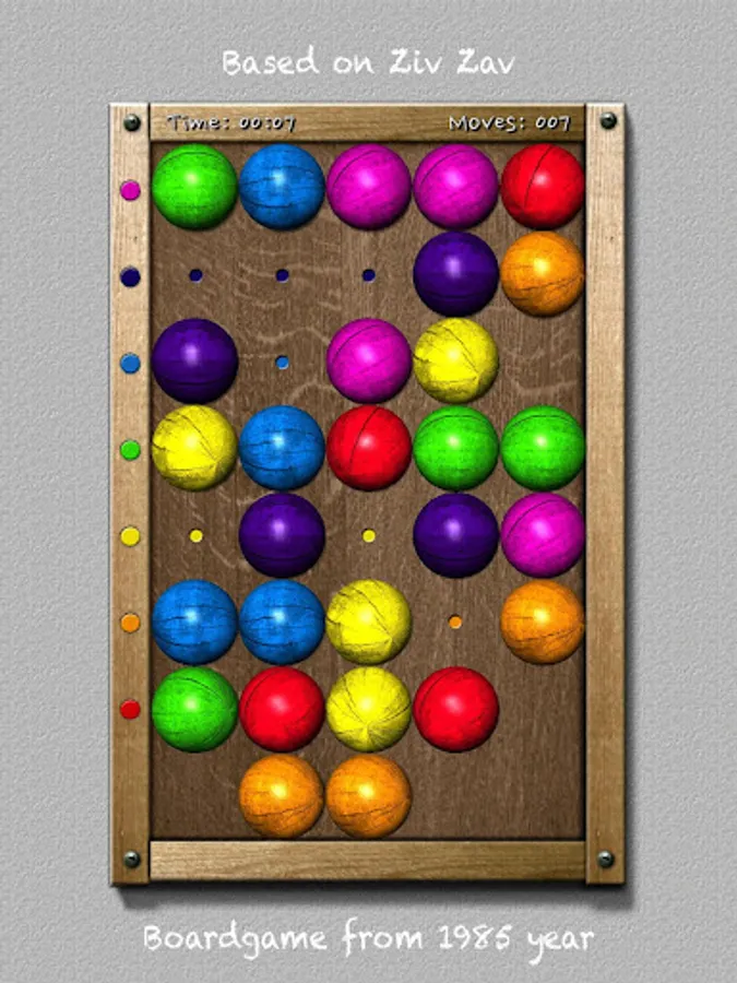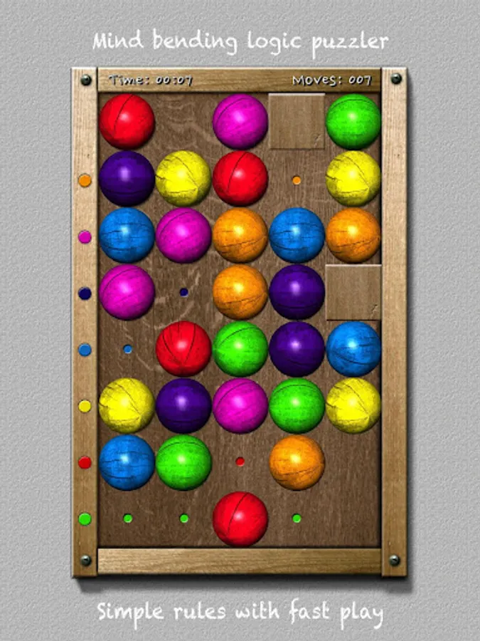 You get old wooden box with 28 balls in 7 colors which you must place in correct rows. But be aware, balls are every time randomly placed and when one ball moves in a raw all others also move.