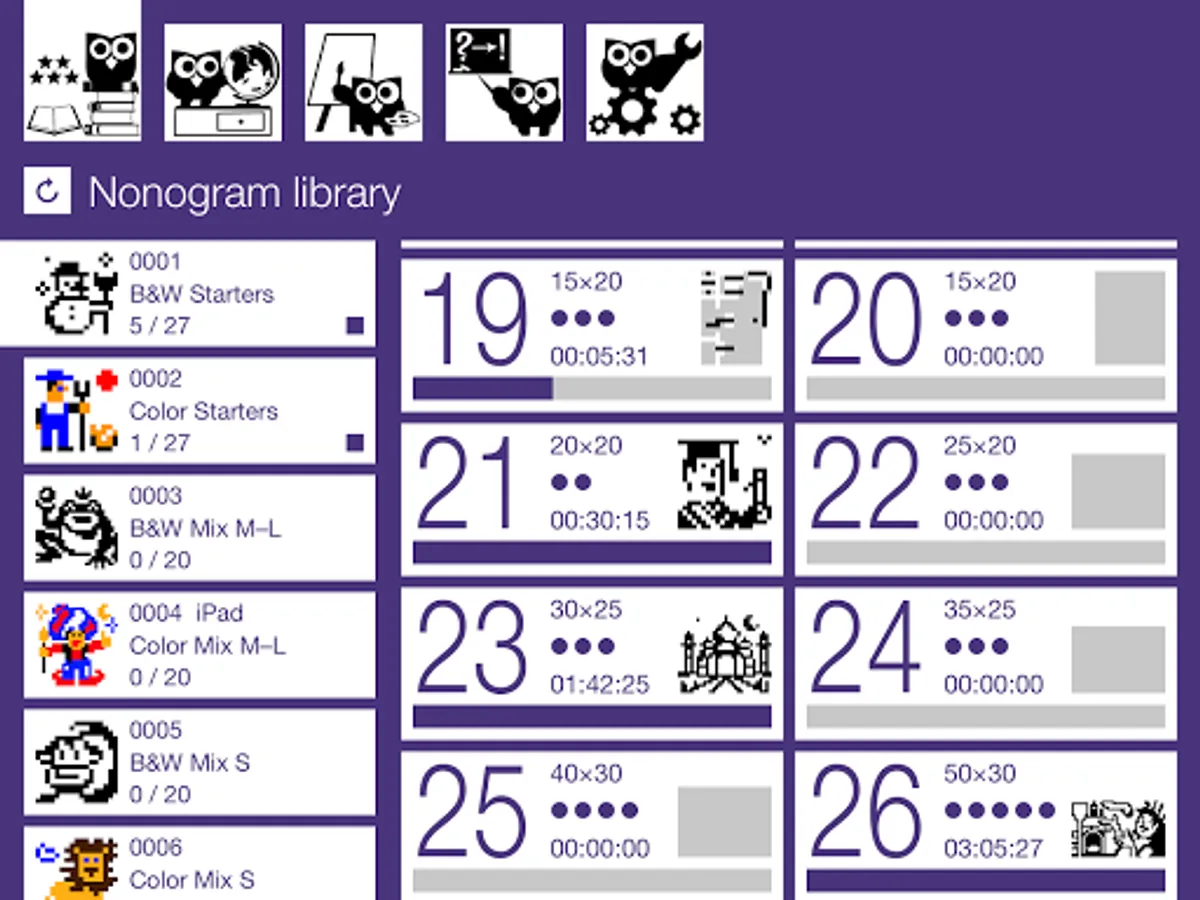 • Over 50 quality Nonograms for free; further puzzle packs can be purchased.