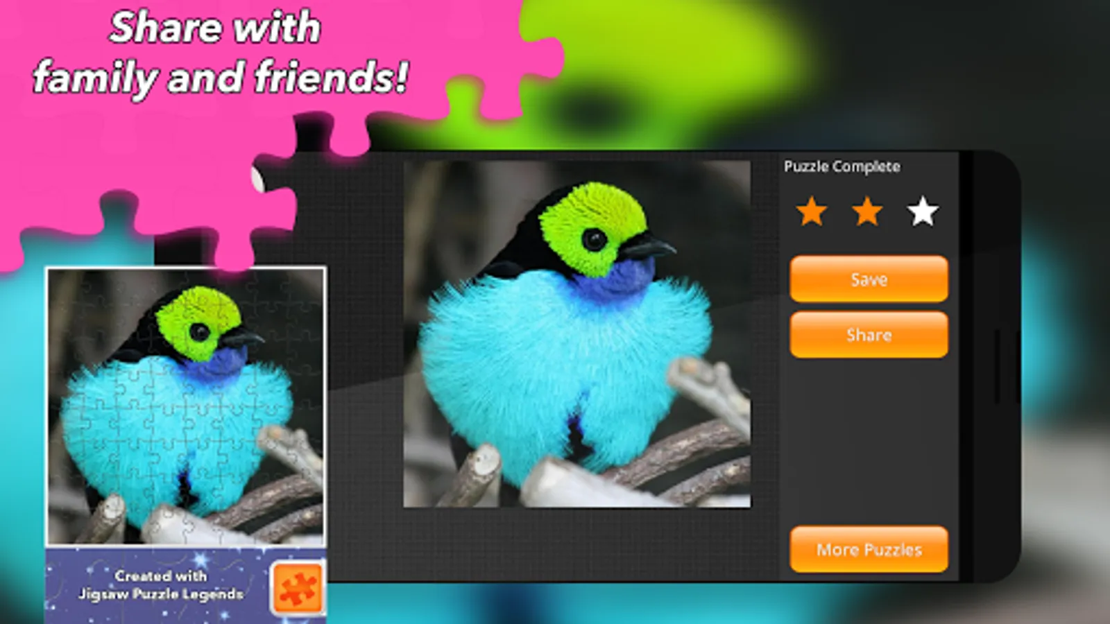 • Save completed jigsaw puzzles on your device or share them with your friends and family.