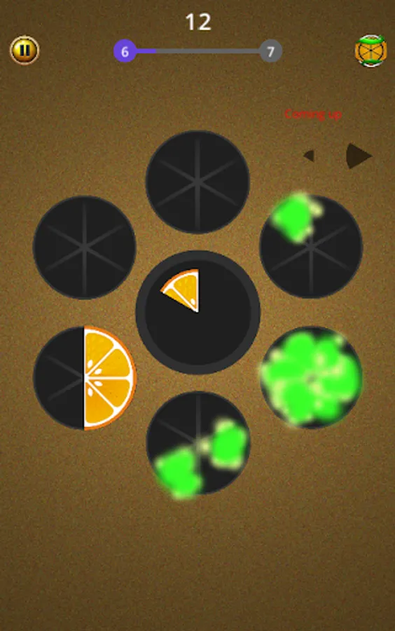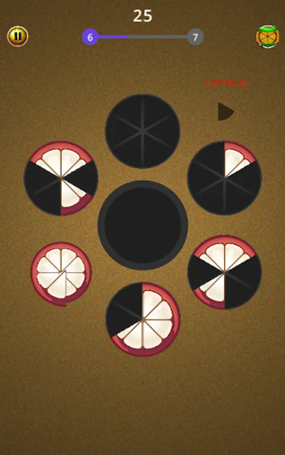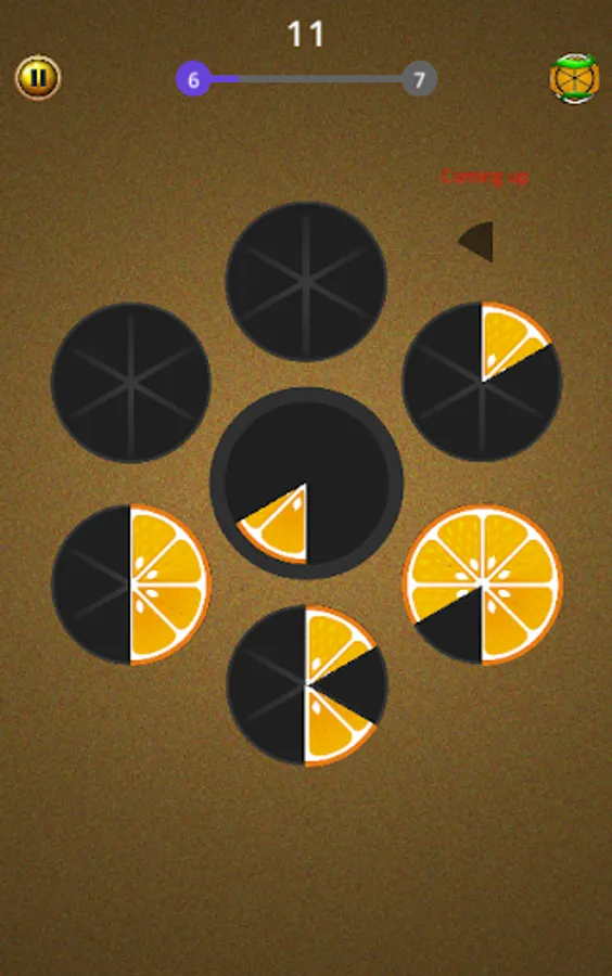 Tap in one of the outer circles to place the slice. Complete a circle to blow it up, after some points/moves, you will advanced to the next level or unlocking new picture.