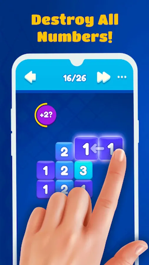 Tap and slide a number tile to combine it with an adjacent tile. If two tiles have different numbers, then they add up together. If two tiles have the same number, combining them will destroy them both.