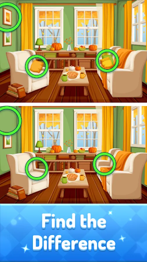 - HINTS! Use hints to highlight the small objects and hidden differences between pictures to spot the difference.