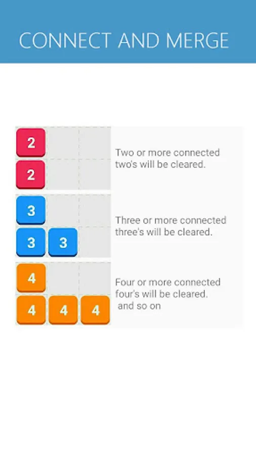 Numbers is a new addictive puzzle game for android. It is all about placing the numbers by touching the screen and merging them by dragging and dropping. Make connected numbers to clear them.