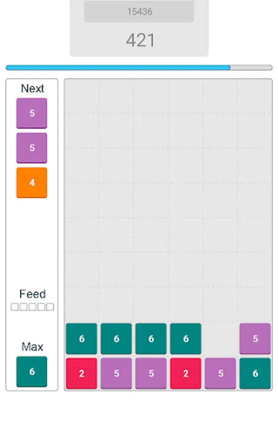 Be careful: After every 5 touch, a new row appears. Game will be over when a column overflows.