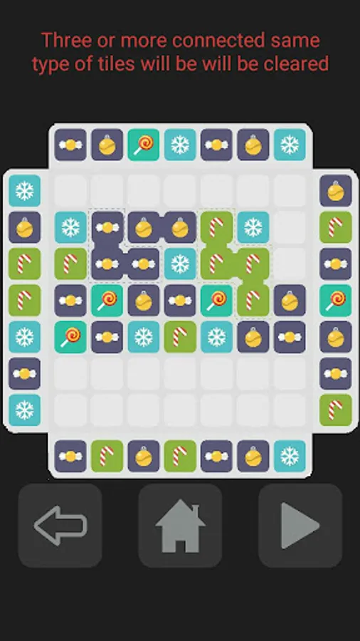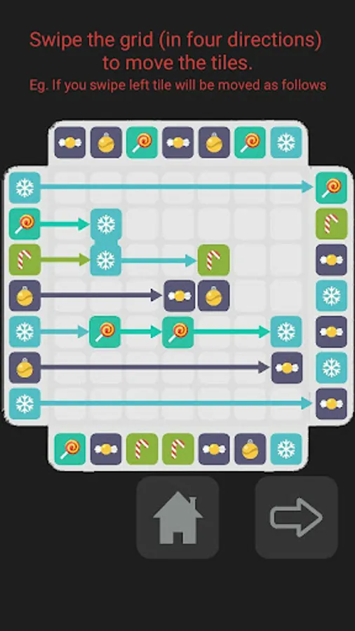 Swipe to move the tiles to the grid. Three or more same type of tiles touch, they will pop.