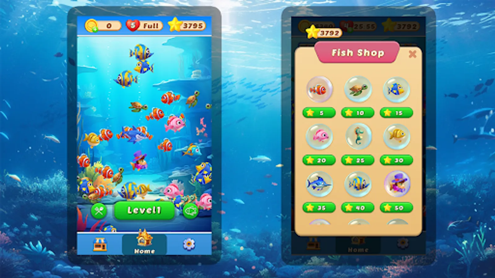 🐠 Play match-3 puzzle games with all your lovely fish friends in those beautiful aquariums designed by yourself!