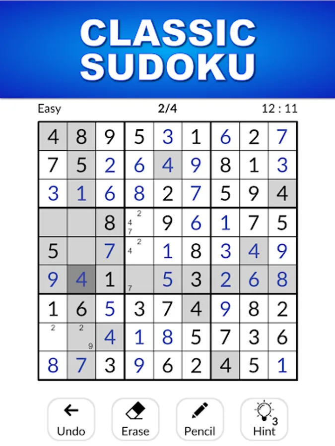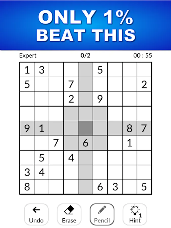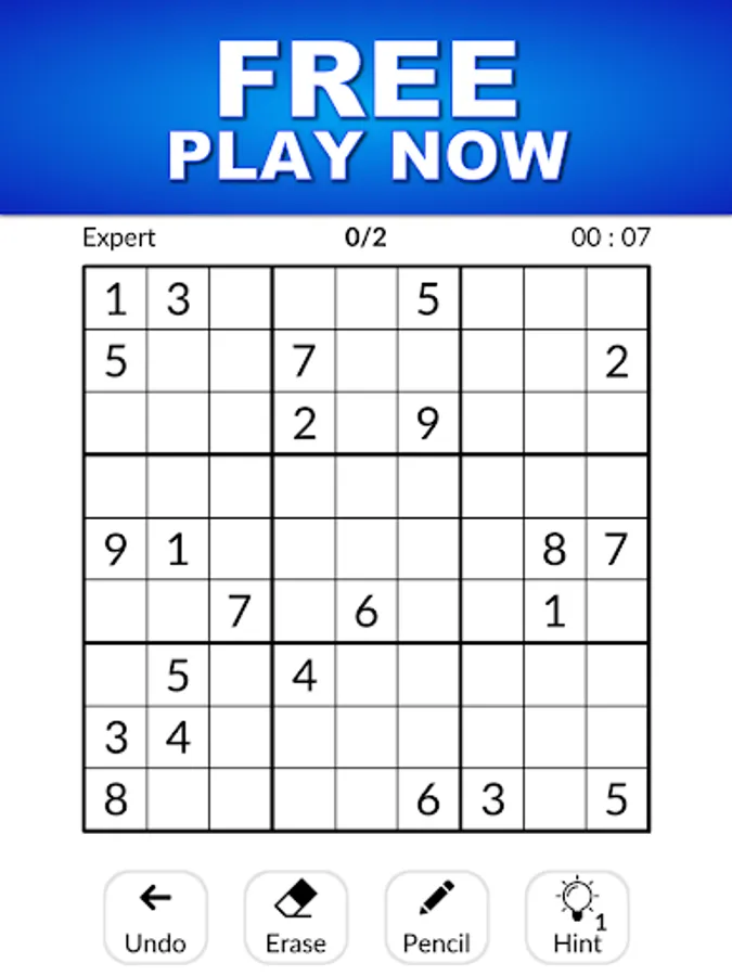Play Sudoku today! Sudoku is the classic challenging logic game of numbers. Win by writing 1 to 9 in every square without having two of the same number in each row or columns or 3 by 3 square.
