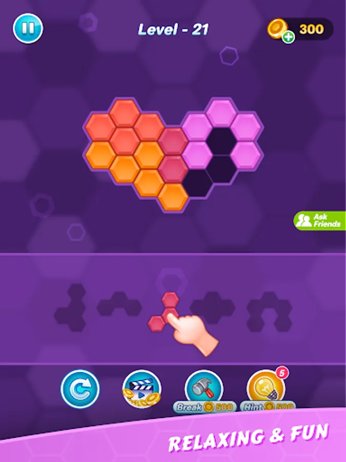 Hexa Puzzle Guru is a relaxing Puzzle Game and train your brain at the same time. With tons of levels available, you’ll enjoy the challenge of testing your puzzle skills daily, while earning tons of coins!