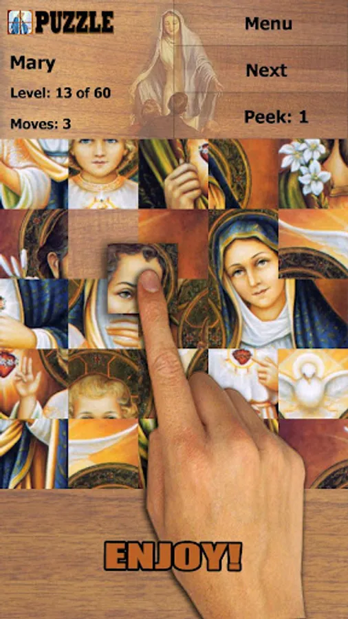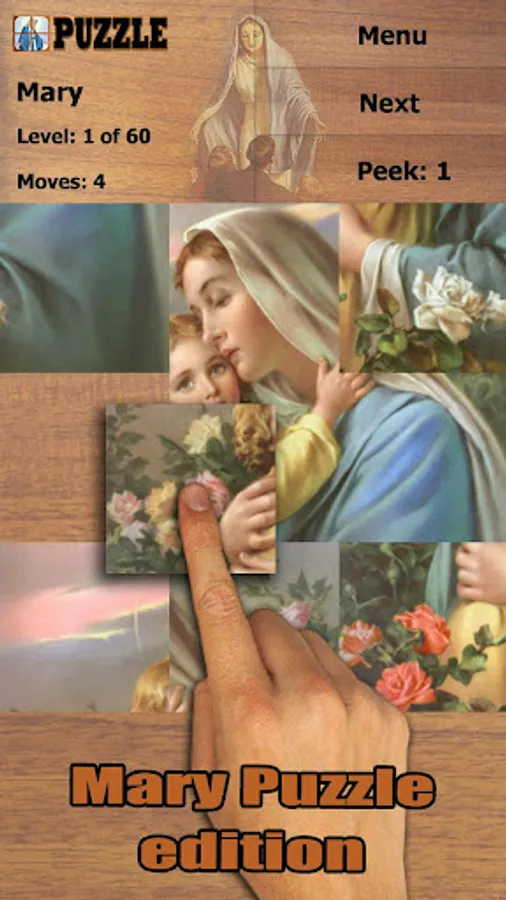 The game challenges you to slide all the puzzle pieces to the right place! Hours of fun for you and your whole family! Every picture is cut into small tiles and mixed up. Slide the puzzle pieces to the right place to create beautiful impressions of Virgin Mary, mother of Jesus. The more you advance, the harder the puzzle gets! But don’t forget, the greater your collection will become!