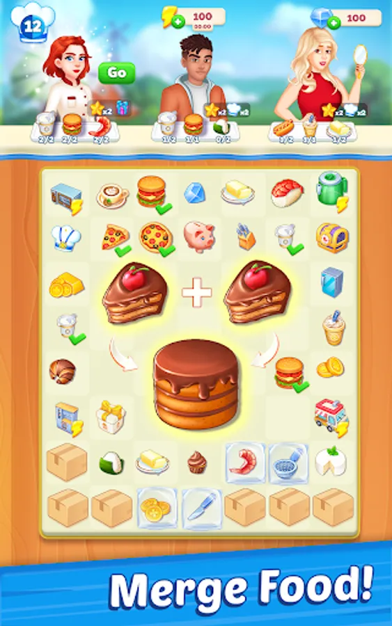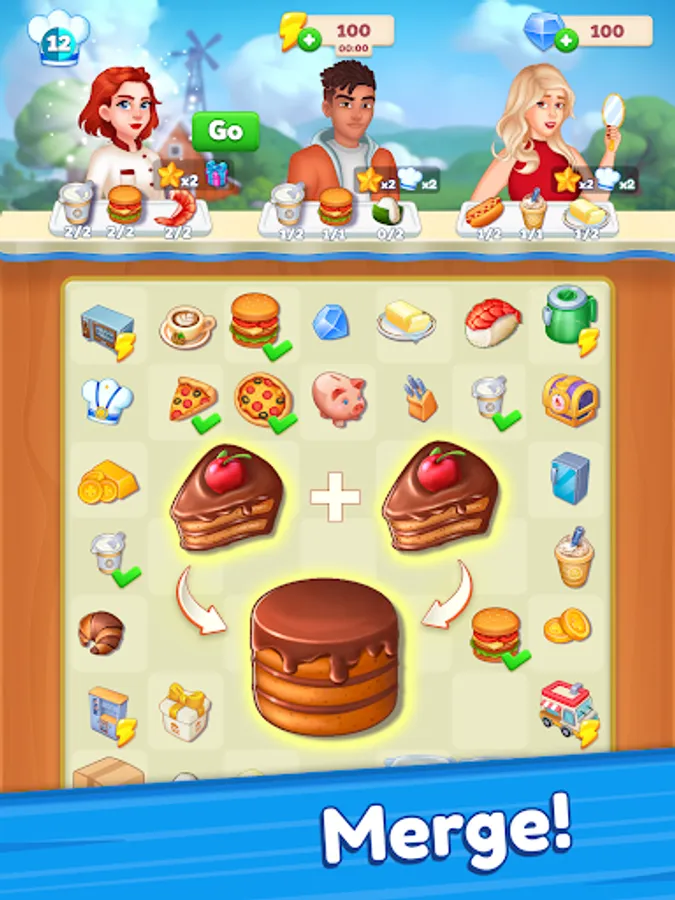 *Merge Food -> Create New Dish -> Serve Order -> Design & Renovate your restaurants & town!*
